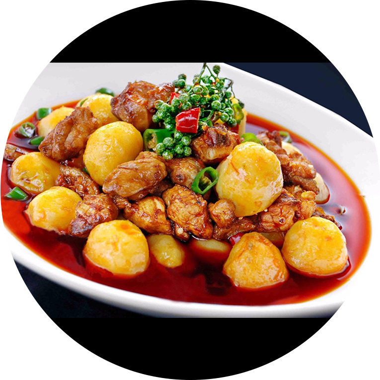 2、油熱后放入雞塊翻炒均勻,放紅99火鍋底料200克;