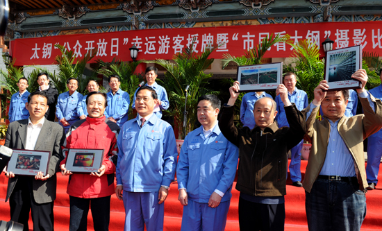 4月23日,隨著第48批參觀者走進(jìn)太鋼,太鋼“公眾開放日”活動(dòng)接待公眾參觀人數(shù)突破1萬(wàn)人。當(dāng)天上午,公司在渣場(chǎng)公園舉行儀式,為11名幸運(yùn)參觀者頒發(fā)紀(jì)念牌,為“市民看太鋼”攝影比賽獲獎(jiǎng)?wù)哳C獎(jiǎng)。公司黨委副書記王新平出席儀式并講話。