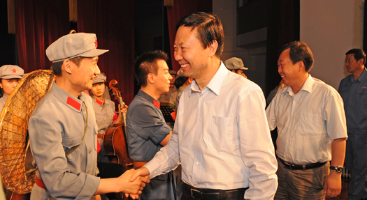 9月11日晚,在太鋼工人俱樂部,北京軍區(qū)戰(zhàn)友文工團演出的《長征組歌》,讓鋼城職工受到了一次愛國主義教育。北京軍區(qū)戰(zhàn)友文工團副團長郭自強、山西省軍區(qū)副司令員姬亞夫、山西省軍區(qū)政治部主任黃獻軍、太原警備區(qū)司令員贠自博,以及太鋼領(lǐng)導(dǎo)楊海貴、韓瑞平、王繼光、柴志勇、王一德,太鋼老領(lǐng)導(dǎo)梁承哲、王福藝、石雙文、張明遠與太鋼職工一起觀看了演出。