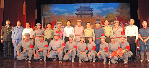 圖為太鋼領(lǐng)導(dǎo)同《長征組歌》部分演員合影。 王旭宏 攝