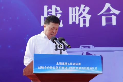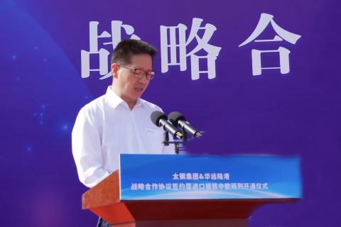 太鋼集團(tuán)黨委書記、董事長(zhǎng)吳小弟代表太鋼向?yàn)榘嗔虚_(kāi)通提供鼎力支持的省市單位、路局、海關(guān)、銀行,特別是華遠(yuǎn)陸港的領(lǐng)導(dǎo)和同仁們表示衷心感謝。