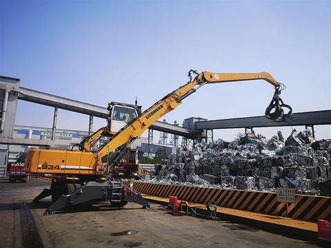 圖為抓鋼機在進行廢鋼裝卸作業(yè)。丁潔 攝