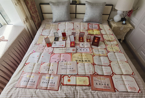 謝東升的家里有一面“獎狀墻”,上面擺滿了他自工作以來獲得的各種榮譽證書、獎狀,全國勞模、山西省勞模、太鋼先進生產(chǎn)工作者……令人眼花繚亂的榮譽稱號把整面墻映襯得金光燦燦,它代表了這位68歲退休工人的光榮歷史。而如今,這面墻上又多了一些新的獎狀,它們屬于35歲的謝璐。