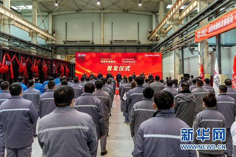 70t級新型復(fù)合材料運煤專用敞車、高強耐蝕不銹鋼復(fù)合材料TE4003C5®首發(fā)儀式。新華網(wǎng) 發(fā)(馬夢迪 攝)