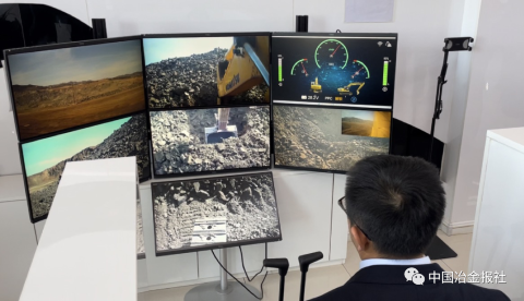 只見端坐在顯示屏前的操作員,手握儀器把手,手起手落之間,畫面中挖掘機的鐵鏟已挖起數(shù)噸礦石。