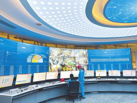 太鋼精密帶鋼公司智慧化集中控制中心,屏幕上實(shí)時(shí)顯示車間的能源消耗和安全生產(chǎn)情況。 本報(bào)記者 李學(xué)林 攝