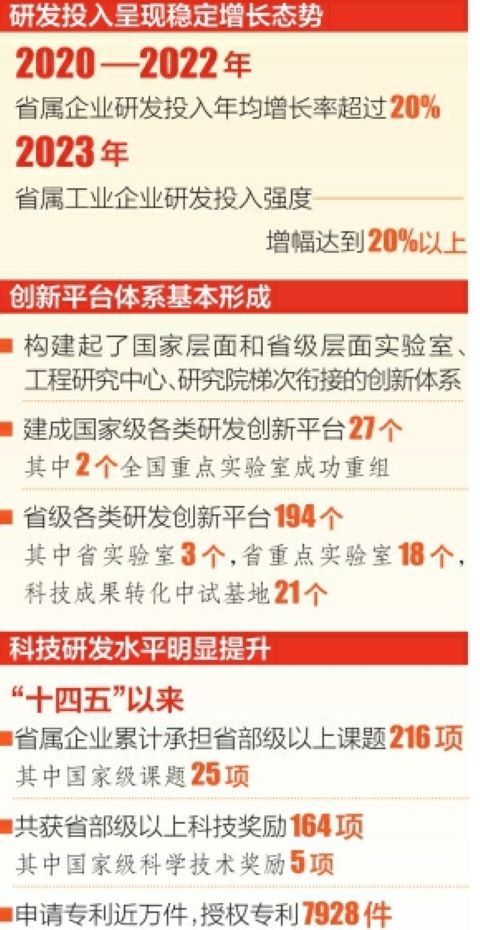 2023年以來,全省國資國企系統(tǒng)持續(xù)加大科技創(chuàng)新投入,強(qiáng)化關(guān)鍵核心技術(shù)攻關(guān),以科技創(chuàng)新推動(dòng)產(chǎn)業(yè)創(chuàng)新催生新產(chǎn)業(yè)新模式新動(dòng)能,促進(jìn)高水平科技自立自強(qiáng)。