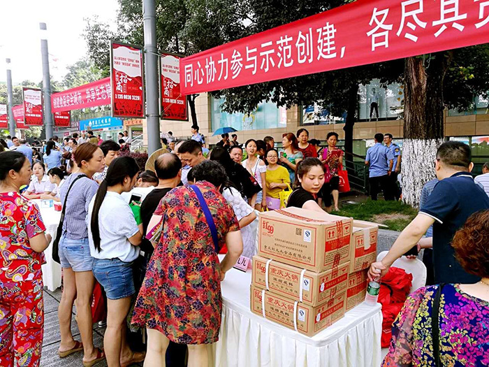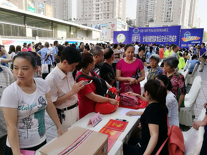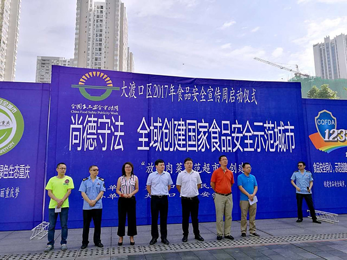 7月10日上午,大渡口區(qū)在九宮廟步行街組織開(kāi)展以“尚德守法”“全域創(chuàng)建國(guó)家食品安全示范城市”為主題,暨食品安全宣傳周宣傳的廣場(chǎng)宣傳活動(dòng)。區(qū)食品藥品監(jiān)督管理分局、區(qū)衛(wèi)生計(jì)生監(jiān)督執(zhí)法局、區(qū)疾控中心、區(qū)食品銷(xiāo)售商戶(hù)代表參加了活動(dòng)。區(qū)政府副區(qū)長(zhǎng)毛偉出席此次活動(dòng)。紅九九食品公司也受邀參與了現(xiàn)場(chǎng)的各項(xiàng)活動(dòng)。
