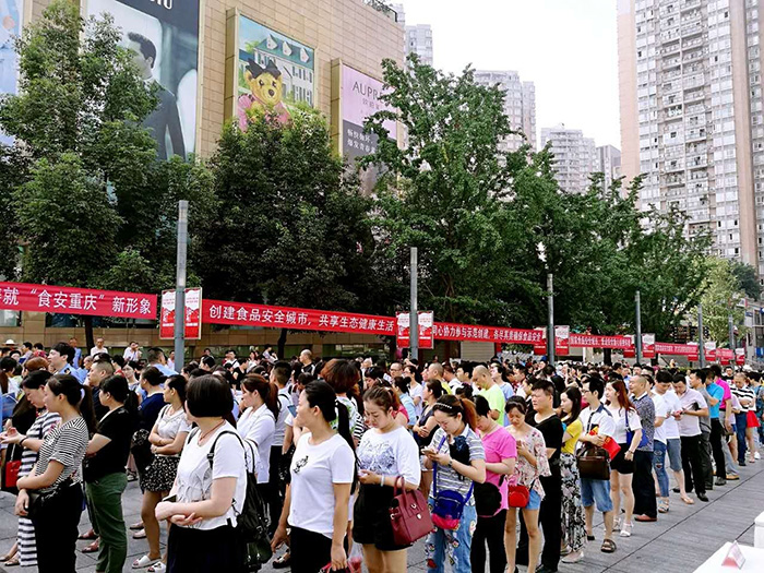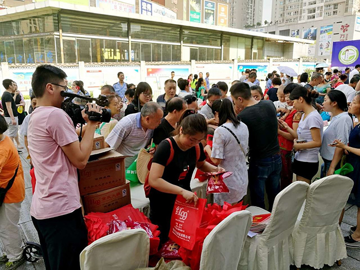 在活動(dòng)現(xiàn)場(chǎng),重慶紅九九食品有限公司免費(fèi)發(fā)放大量的紅99火鍋底料及濃縮調(diào)料、圍裙、環(huán)保袋,現(xiàn)場(chǎng)群眾爭(zhēng)相領(lǐng)取。