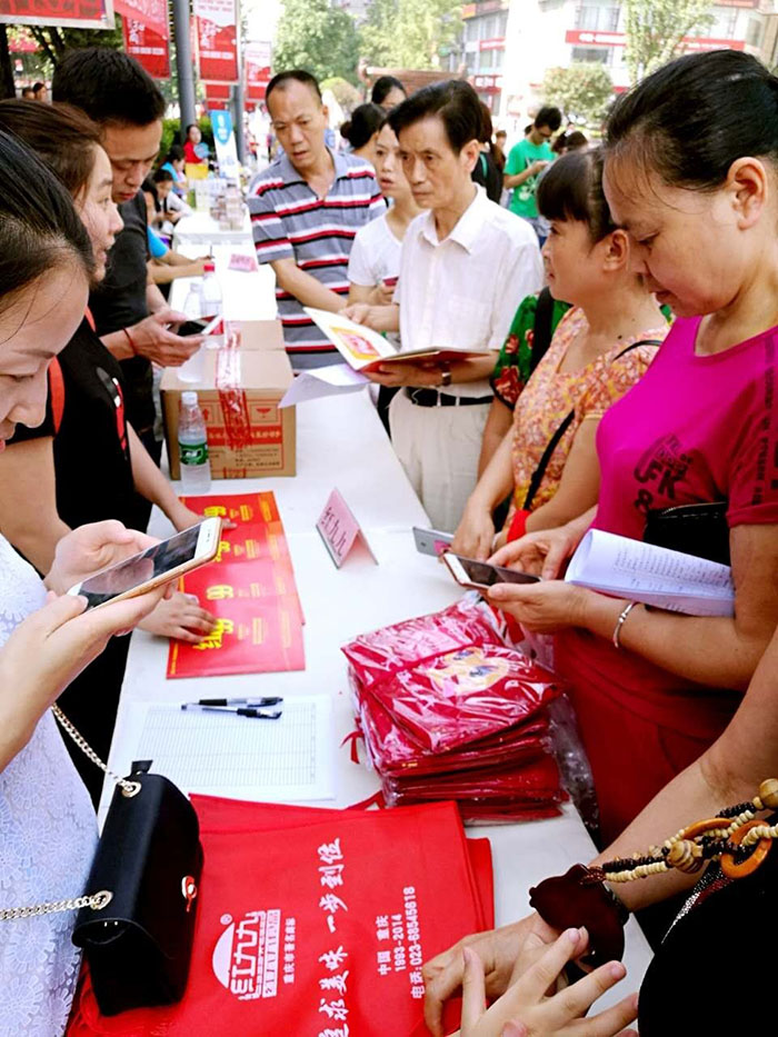 >>>> 紅99展臺(tái),群眾現(xiàn)場(chǎng)掃描紅九九公司二維碼<<<<
